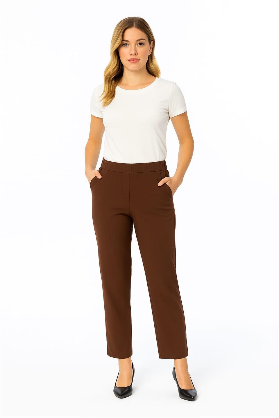 Kadın Büyük Beden Kahverengi, Bel Komple Lastik Cepli Kumaş Pantolon 65N38733 (65N38733)