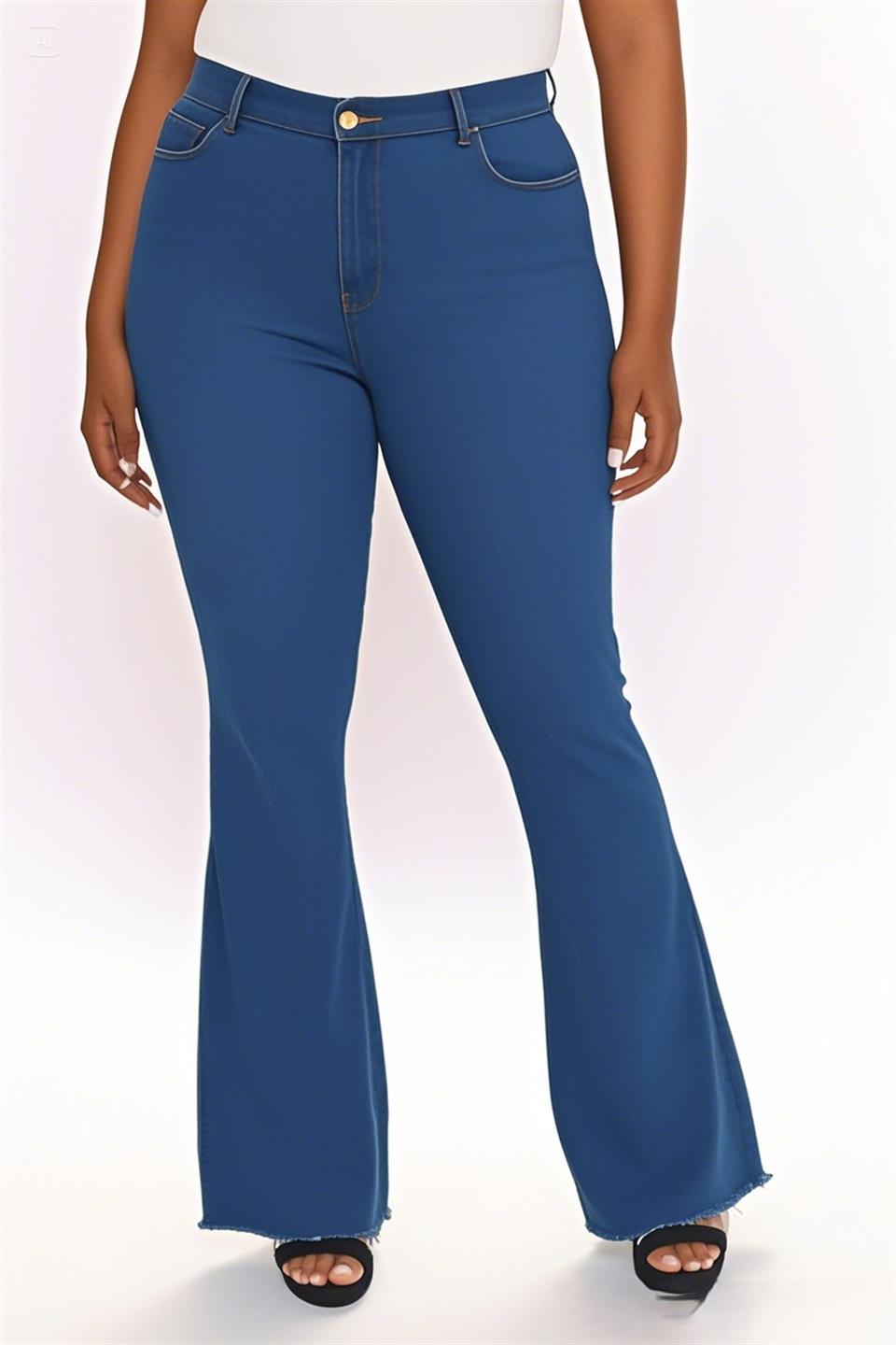 Kadın Büyük Beden Mavi, Ekstra Yüksel Bel , İspanyol Pis Dikişli Paça, 5 Cep Kot Pantolon 65N38742