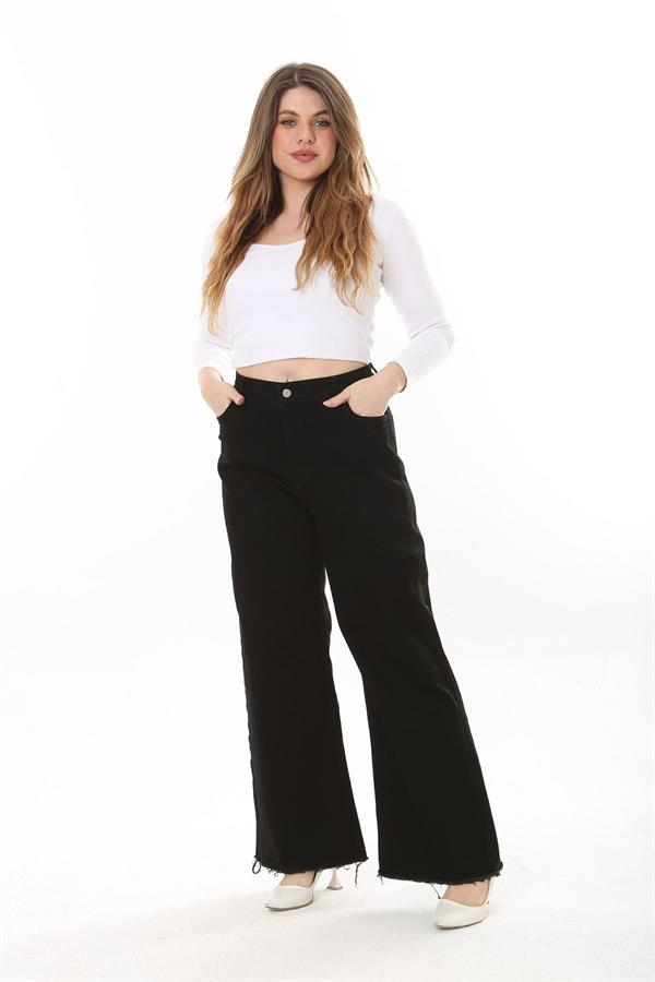 Kadın Büyük Beden Siyah Geniş Paçalı Likralı Paçası Pis Dikişli Kot Pantolon 65N37650 (65N37650)