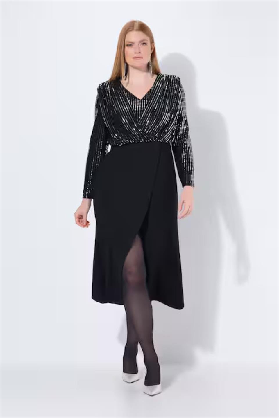 Kadın Büyük Beden Siyah, Payet Detaylı Abiye Elbise