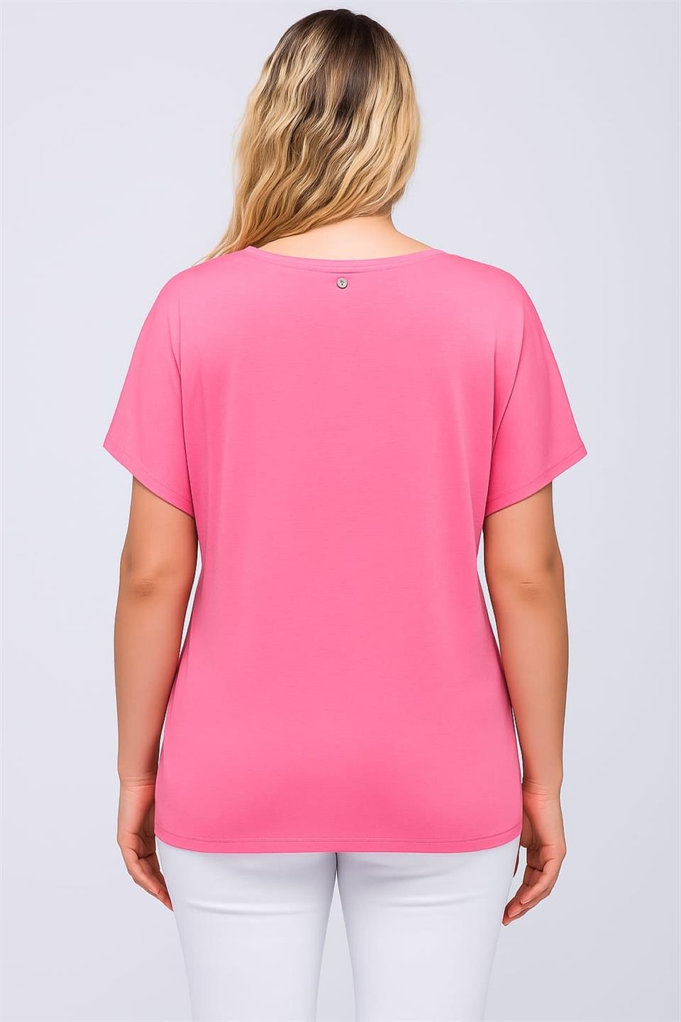 Kadın Büyük Beden Pembe, Yıkamalı Kumaş, Yazı Baskılı Yarasa Kol Bluz 65N39131 (65N39131)